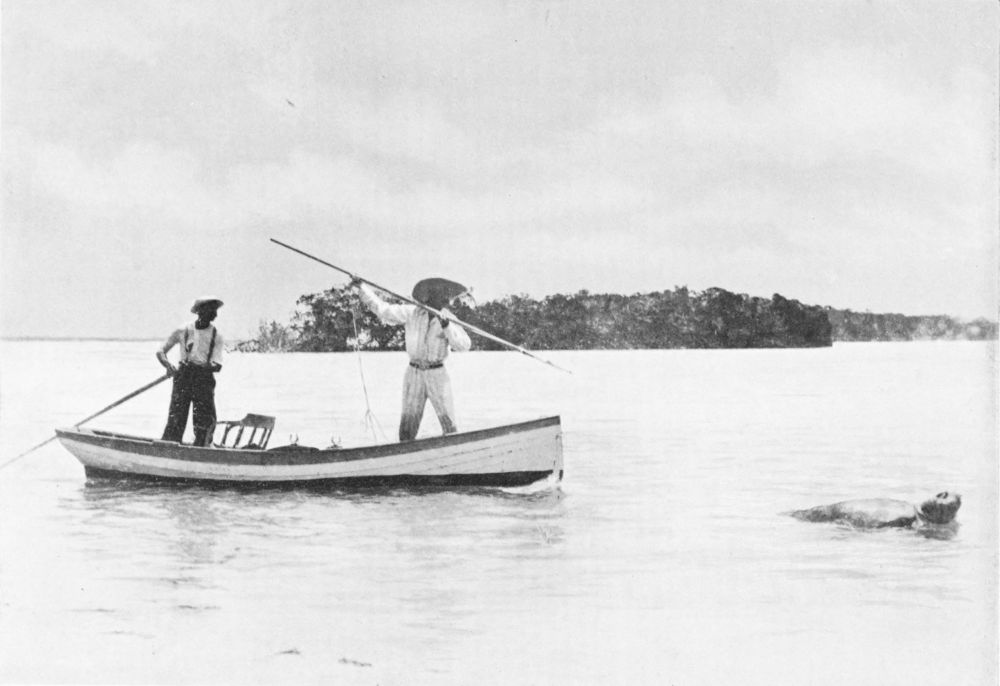 A small and sharp harpoon is necessary to penetrate the turtle’s shell, and it is important to make this change in your equipment if you go from rays to turtles. All being ready, your guide paddles you as quietly as possible into the pass, and you must get in the way of standing motionless in the bow in{112} a slight lop, for roughish weather is undoubtedly the best for turtle-spearing.