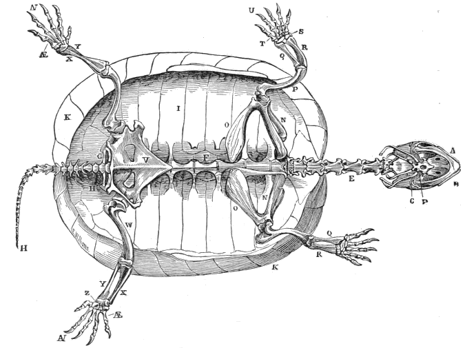 The Saurians of the Past Seas.—The Anatomical Structure of the Turtles.—Their Size.—Their Visits to the Shores.—The Dangers that await their Young.—Turtles on the Brazilian Coast.—Prince Maximilian of Neuwied and the Turtle.—Conflicts of the Turtles with Wild Dogs and Tigers on the Coast of Java.—Turtle-catching on Ascension Island.—Tortoise-shell.—The Amblyrhynchus cristatus.—Marine Snakes.—The Great Sea-Snake 172