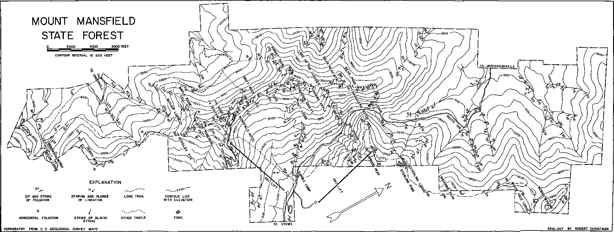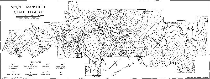 Included within Mount Mansfield State Forest are Mount Mansfield, Smugglers Notch and a number of the mountains of the Green Mountain range to the northeast and southwest of these famous landmarks. Because much of the area is easily accessible by trails, ski lifts, and roads (see the index map of Figure 1), the visitor has ample opportunity to observe the minerals, rocks, and mountains. Undoubtedly, these observations have provoked questions which, for lack of sufficient information, have gone unanswered in the mind of the observer. In the hopes of remedying this situation—a very grievous situation in the eyes of a geologist—this brief geologic pamphlet has been written to help the visitor to the State Forest obtain a greater appreciation of the handiwork of nature.