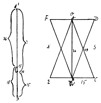 Wie überall, so geht auch der geschichtlichen Mathematik eine schier unendlich lange prähistorische Zeit voraus, in der die[S. XIV] wichtigsten Begriffe geschaffen werden: der des Masses, der Zahl, der geraden Linie, des Abstands, der Richtung, des Winkels, des Punkts, der Fläche, des Körpers etc.; in dieses Dunkel kann höchstens die Sprachforschung einiges Licht bringen. Wir sehen, dass die Masse überall vom eigenen Körper hergenommen werden, von der Puruscha, der Menschenlänge der Inder, der Elle Mah und Handbreite der Ägypter bis zum Fusse der Griechen, Römer und Germanen. Die Finger, gelegentlich auch die Zehen bilden die natürlichen Komplexe für die Zählung; 20, 10, 5 bilden die Abschnitte. Wenn die Griechen die Ebene επιπεδον nennen, d. h. das, worauf der Fuss steht, so können wir schliessen, wie sich ihnen der mathematische Begriff Ebene aus dem der Ebenheit entwickelt hat und ευθεια, was ich als die ohne Zeitverlust darauflosgehende interpretiere und mit θυνω zusammenbringe, bezieht sich auf die Gerade als kürzeste Verbindung, wie das lateinische recta mit Richtung zusammenhängt. Sinnesreize, Sinneswahrnehmungen sind es, aus denen sich die mathematischen Vorstellungen entwickelten und man kann sich den Ursprung und die Anfangsepoche der Mathematik gar nicht grobsinnlich genug vorstellen. Die Mathematik, die Arithmetik wie die Geometrie ist eine Experimentalwissenschaft bis Archimedes gewesen. Ja sie ist es noch heute, man denke an die Seifenblasen und die Gelatineflächen, die sich Kummer herstellte, an viele zahlentheoretische Sätze Fermats und Eulers, an Gauss' Zahleninduktion; und wenn man die Mathematik rubrizieren will, so gehört sie historisch zu den Naturwissenschaften, wenn sie auch allmählich mehr und mehr den Übergang zur reinen Geisteswissenschaft vollführt, und grade die gegenwärtige, durch Veronese und Hilbert gekennzeichnete Phase einen rein logischen Charakter trägt.