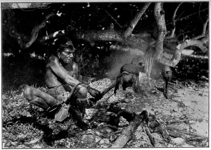 What interested me was the feast that was in preparation. On a long stick, over the fire, were a dozen pieces of meat. More meat was grilling on the embers of another fire. On leaves near by were the entrails of the animal that was cooking. I do not know what it was that made me suspect the nature of this meat. It certainly was not much different in appearance from pork. But some sixth sense whispered to me that it was not pork.