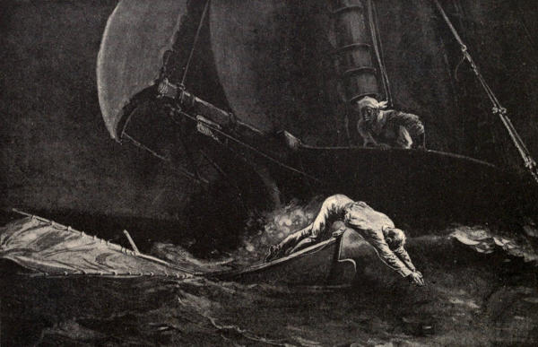 | "TWO PAIRS OF POWERFUL ARMS DRAGGED HIM INTO THE BOAT" | " | 94 |
