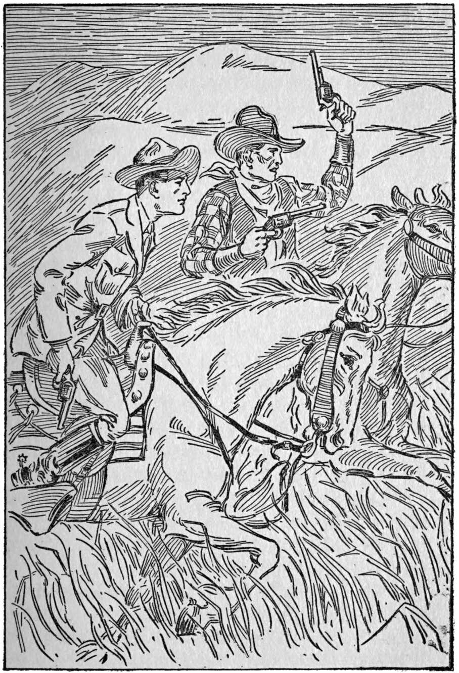 The two men who were still in view pulled their ponies to their haunches and swung about facing each other. The pursuers were amazed to see both men draw their weapons and begin shooting at each other.