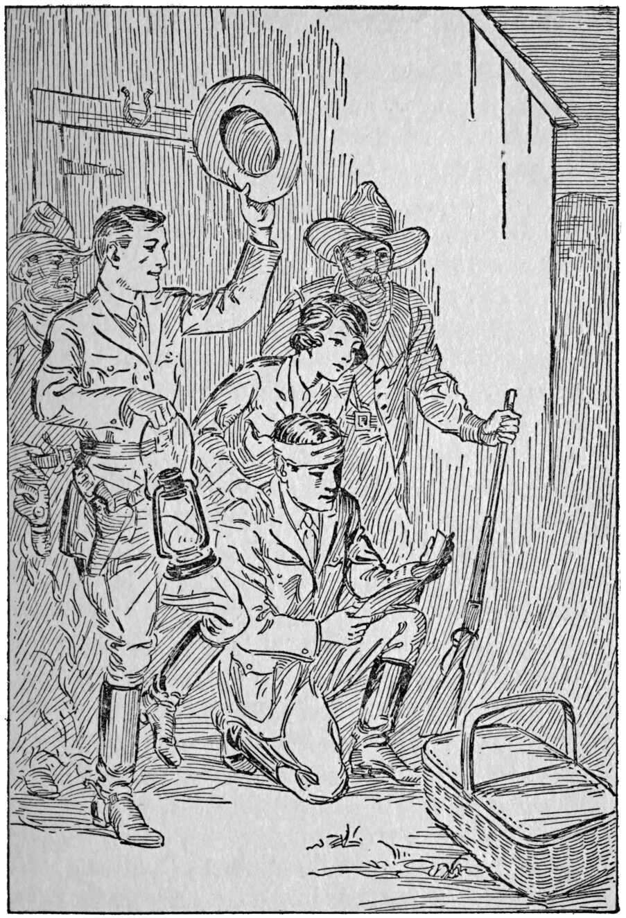 “Shoot, Sam! Shoot, I tell you!” A mysterious shot is fired. Jim finds a trail. A “lovely party” spoiled. The Overland Riders find their ponies missing. Distress at the Circle O. Jim-Sam blame each other.