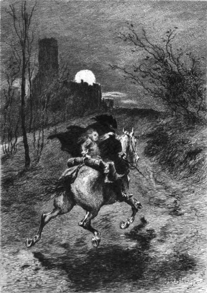 ... Je me cramponnais avec frayeur à la croupière du cheval ou à l'habit de mon grand-père...—Dessin de J. LE BLANT, gravure de H. TOUSSAINT