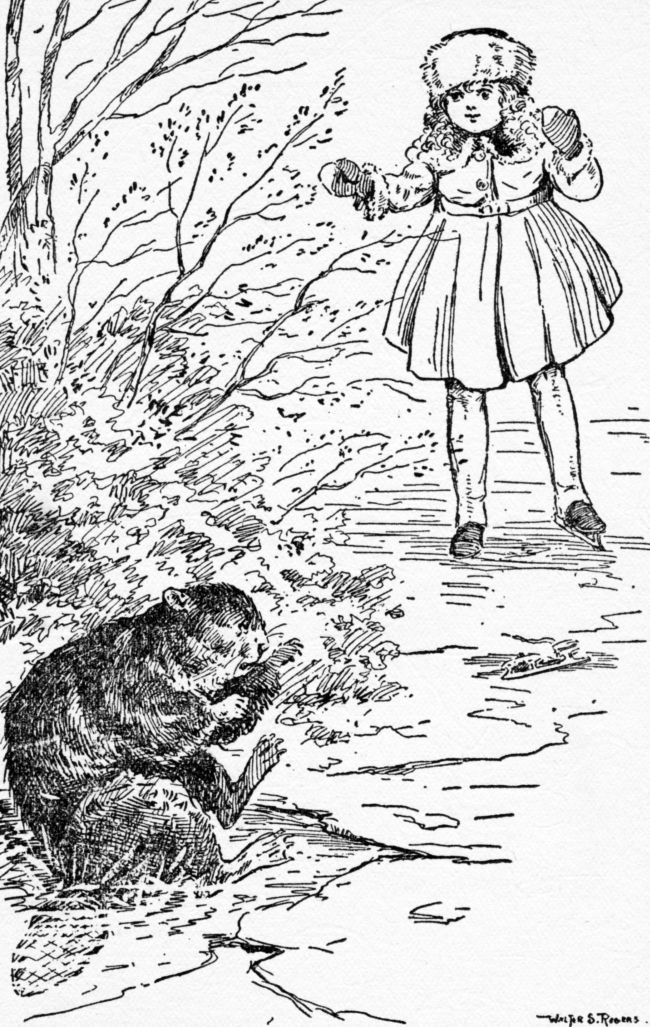 “Oh, it’s a little beaver! He knocked my skate out to me! Oh, don’t go away, little beaver!” cried Millie. “I won’t hurt you!”