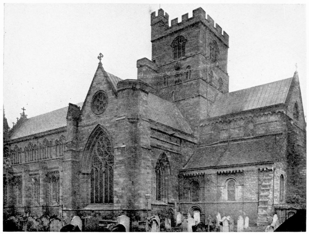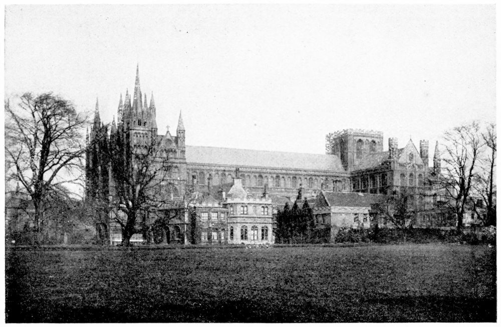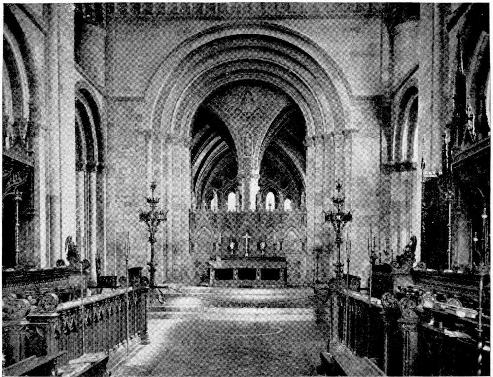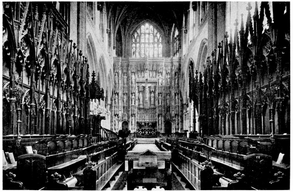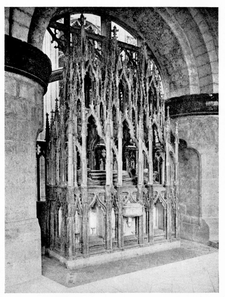 “In Italy the bones of a saint or martyr were almost invariably deposited either beneath or immediately in front of the altar. But in the Gothic nations this original notion of the burial-place of the Saints became obscured, in the increasing desire to give them a more honourable place. According to the precise system of orientation adopted by the German and Celtic nations, the eastern portion of the church was in those countries regarded as pre-eminently sacred. Thither the high altar was generally moved, and to it the eyes of the congregation were specially directed. And in the eagerness to give a higher and holier even than the highest and holiest place to any great saint, on whom popular devotion was fastened, there sprang up in most of the larger churches during the Thirteenth Century a fashion of throwing out a still further eastern end, in which the shrine or altar of the saint might be erected,—and to which, therefore, not merely the gaze of the whole congregation, but of the officiating priest himself, even as he stood before the high altar, might be constantly turned. Thus, according to{x} Fuller’s quaint remark, the superstitious reverence for the dead reached its highest pitch, ‘the porch saying to the churchyard, the church to the porch, the chancel to the church, the east end to all—“Stand further off, I am holier than thou.”’ This notion happened to coincide in point of time with the burst of devotion towards the Virgin Mary, which took place under the Pontificate of Innocent III., during the first years of the Thirteenth Century; and, therefore, in all cases where there was no special local saint, this eastern end was dedicated to Our Lady and the chapel thus formed was called The Lady-Chapel. Such was the case in the Cathedrals of Salisbury, Norwich, Hereford, Wells, Gloucester and Chester. But when the popular feeling of any city or neighbourhood had been directed to some indigenous object of devotion, this at once took the highest place, and the Lady-Chapel, if any there were, was thrust down to a less honourable position. Of this arrangement, the most notable instances in England are, or were (for in many cases the very sites have perished), the shrines of St. Alban in Hertfordshire, St. Edmund at Bury, St. Edward in Westminster Abbey, St. Cuthbert at Durham, and St. Etheldreda at Ely.”—(A. P. S.)