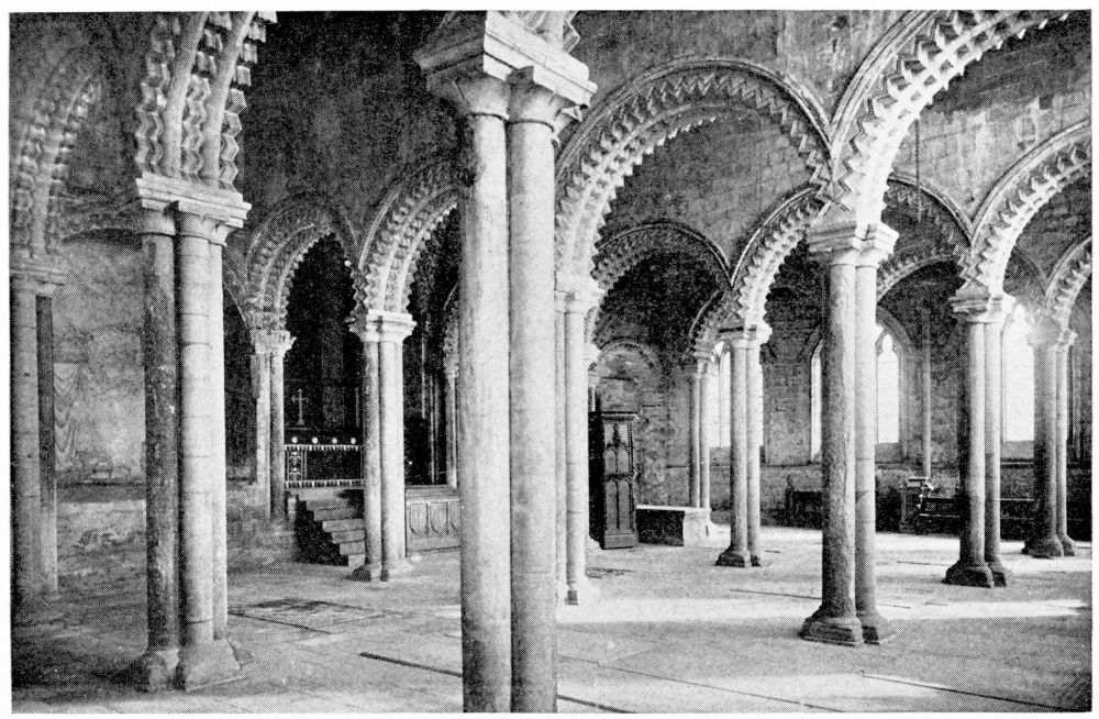 “Norman ornaments are of endless variety; the most common is the chevron, or zigzag, and this is used more and more abundantly as the work gets later; it is found at all periods even in Roman work of the Third Century and probably earlier, but in all early work it is used sparingly, and the profusion with which it is used in late work is one of the most ready marks by which to distinguish that the work is late. The sunk star is a very favourite ornament throughout the style; it occurs on the abacus of the capitals in the chapel of the White Tower, London, and it seems to have been the forerunner of the tooth-ornament. The billet is used in the early part of Peterborough, but discontinued in the later work, and{xvii} does not often occur in late work. It is sometimes square, more frequently rounded. The beak-head, the cat’s-head, the small medallions with figures and the signs of the zodiac, all belong to the later Norman period. In the later Norman mouldings a mixture of Byzantine character is seen on the ornaments as at Durham. It has also been observed that in the sculpture of the period of the late Norman style there is frequently a certain mixture of the Byzantine Greek character brought home from the East by the Crusaders, who had returned. This is also one of the characteristics of the period of the Transition.”—(J. H. P.)