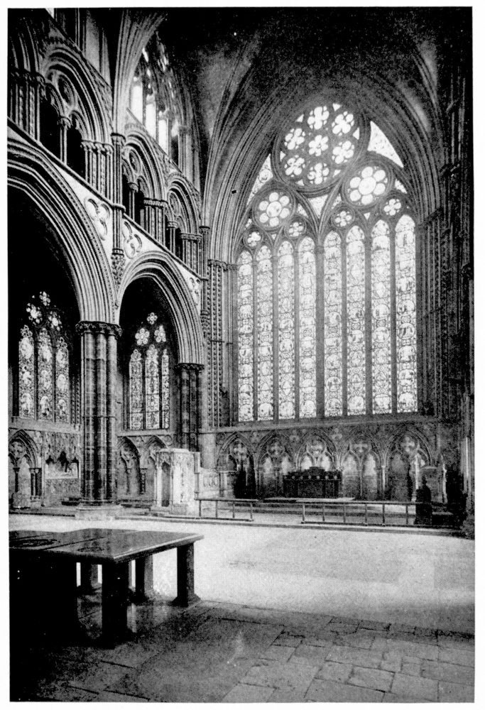 The choir and apse of Westminster Abbey and the north transept of York Minster are also good examples of this period. We may note here that it was customary to build the west front immediately after the choir and leave the nave to be filled in afterwards.