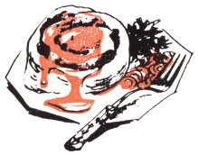 Make ½ recipe Fruit Shortcake dough (p. 3). Pat into 6″ square; spread with 1 tbsp. soft butter. Sprinkle with 2 tbsp. sugar, ¼ tsp. cinnamon, 3 tbsp. chopped nuts. Roll as for jelly roll; moisten edge; and press to seal. Cut into 8 to 10 slices.
