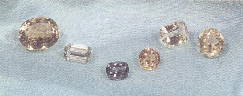 In the gem trade, the most important zircons are those that are colorless, golden brown, or sky blue. Such stones originally were reddish brown zircon pebbles from Indochina, but they have been converted by being subjected to temperatures 57 approaching 1800° F. for periods of up to two hours. When the original zircons are heated in a closed container, the stones become blue or colorless; when a flow of air is allowed through the container, the stones become golden yellow, red, or colorless. In most of these converted stones the color remains quite stable, but in some it may revert to an unattractive greenish or brownish blue after a period of time.