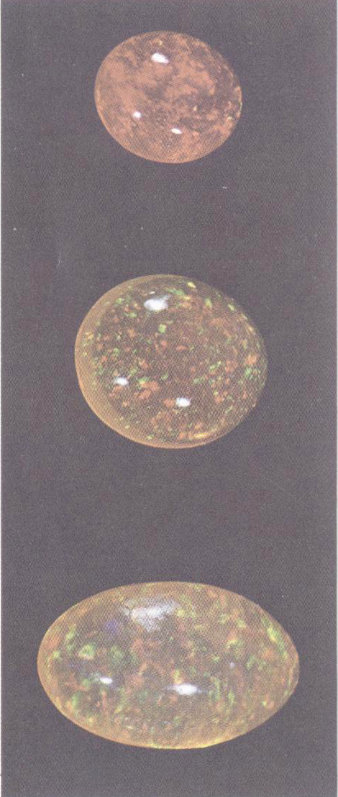 | Opal | 6 | 2.10 | 1.45 | None | Low | Red, dark gray, orange, white, with or without varicolored fire |