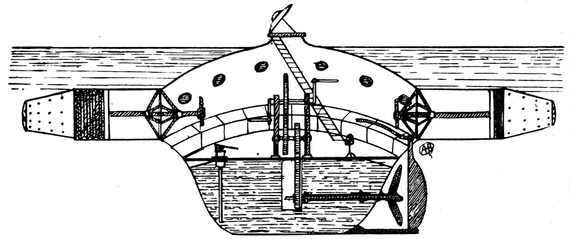 The submarine of Mr. Alstitt, constructed in 1863 at Mobile, in the U.S.A., possesses a great interest in that it was the first to be fitted with two modes of propulsion; the one for navigation on the surface, the other beneath.