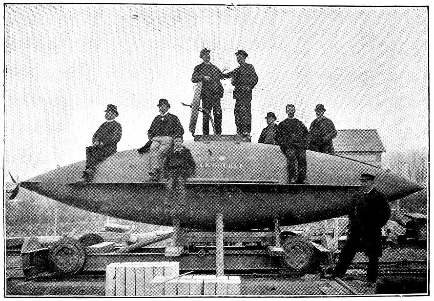 Now contrast this rude and dangerous craft with the “Holland” boats now building for the British Government, and the advance which has been made in the last forty years is evident.