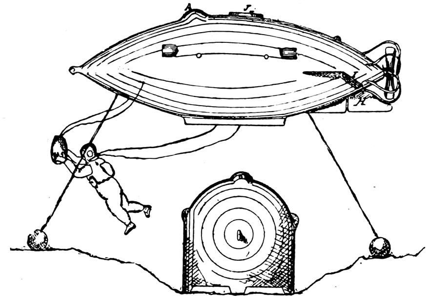 If one may contrast for a moment the present attempts at aerial navigation with the concurrent attempts at submarine navigation, one quickly sees how terribly the æronaut is handicapped as compared with the under-water sailor. The advantage of the dense medium which the sea offers to the submarine navigator is precisely the same as it has offered from the beginning of time to the surface navigator, and nothing new is needed to sustain the submarine ship, whereas the unhappy man who seeks to navigate the air has to obtain from a medium of extraordinary levity the support necessary for keeping him aloft. The difference between the specific gravity of air (of which ships are full) and of water is so great by comparison between the specific gravity of any gas available for filling aerial-ships and that of air, that the problem of the submarinist is easy indeed compared with the other. But it is in the face of xxiiithis initial and enormous difficulty that the æronauts of to-day have apparently persuaded themselves that they can successfully float their balloon-ship in mid-air, and propel it not only against the rapid tides of the air in which it floats, but also drive it at a good additional speed. When men are to be found capable of committing their fortunes, and even their lives, to navigation of this kind, it is not surprising to find that the far easier problem of navigating the seas beneath the surface has won the attention and the effort of enterprising men. They certainly have chosen, if the humbler, also the more practical and promising field of operation. I doubt not that they have likewise chosen the more fruitful field.