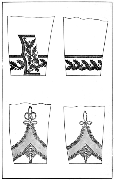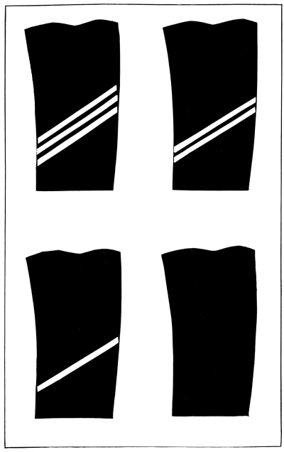 Thus it came about that the accepted sailor uniform consisted of easy fitting garments suited to the work of hauling on the ropes, working aloft on the rigging, masts and spars of the sailing ships and pulling at the oars of the small boats. From this beginning came the sailor uniform of to-day, the bell-mouthed trousers that could be rolled up quickly and easily when the barefooted sailors washed down the decks, the easy-fitting, loose-necked shirt or “jumper,” the short overcoat or “peacoat” for winter wear, and the loose-topped, brimless cap which to give it a smarter appearance when going ashore “on liberty” (the sailor term for leave of absence) was provided with a light ring or “grommet” to stretch the crown out flat, resulting in the common sailor “flat-hat” of to-day.