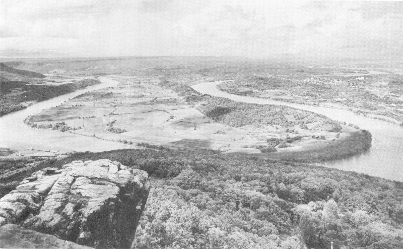 View from Point Lookout overlooking Moccasin Bend with Chattanooga in background.