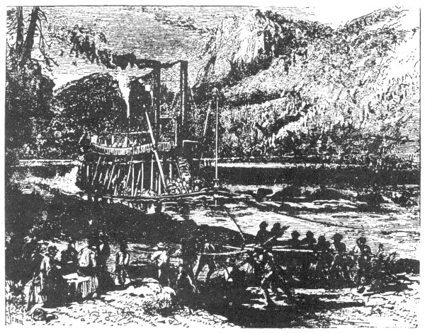 Steamboat Being Warped Through “The Suck” Before the Dam at Hale’s Bar was built in the Tennessee