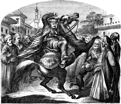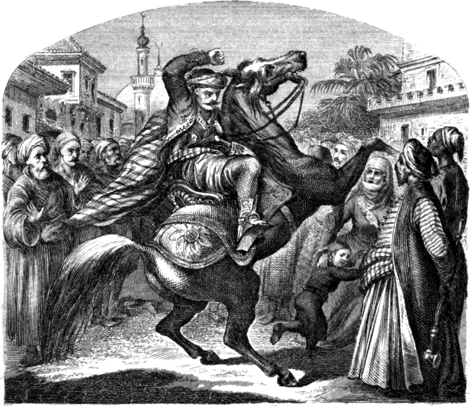 Ha házam, – ezt veté utána arab versekben, – érzelemmel birna s érezhetné azon szerencsén való örömet, hogy téged birhat, azt nyilván hirdetné s előtted leborulva kiáltana: „Ah mely kéj, mely szerencse, hogy ily nemes és szives férfi tisztel meg engem jelenlétével s nem veti meg azt, hogy nálam legyen egy éjjeli háláson!