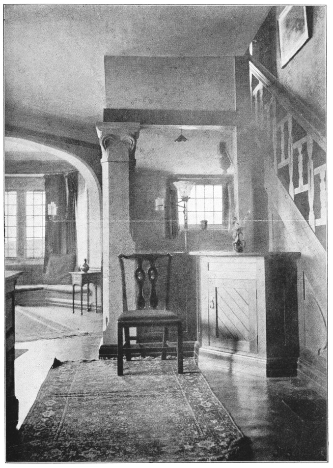 Any house is cold all through the winter months unless a fire of some kind is kept burning in the hall; many people, therefore, find it necessary to have a stove or heating apparatus; and, in most houses, it is thought necessary to have two other5 fires burning, one in the living room, and one in some other room that there may be somewhere to show visitors. Now when the hall is also a sitting room, with a fire in it, we get, for the trouble and expense of two fires, all the advantages ordinarily attaching to three.