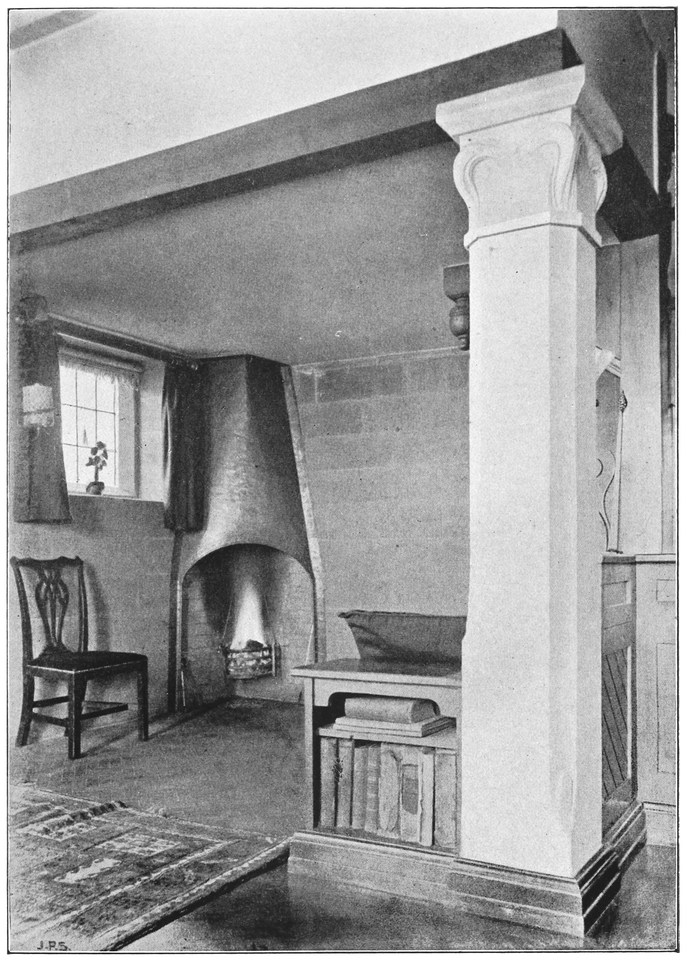 When the architect leaves the house, the subservience to convention is not over. After him follow the decorator and the furnisher, who try to overcome the lifelessness and vapidity by covering all surfaces with fugitive decorations and incongruous patterns, and filling the rooms with flimsyiv stereotyped furniture and nick-nacks. To these the mistress of the house will be incessantly adding, from an instinctive feeling of the incompleteness and unsatisfactoriness of the whole. Incidentally we see here one reason why the influence of the architect should not stop at the completion of the four walls, but should extend to the last detail of the furnished house. When his responsibility ceases with the erection of the shell, it is natural that he should look very little beyond this. There is no inducement for him to work out any definite scheme for a finished room, for he knows that if he had any aim the decorator and furnisher would certainly miss it and would fail to complete his creation. If, when designing a house, the architect were bearing in mind the effect each room would have when finished and furnished, his conceptions would be influenced from the very beginning, and his attitude towards the work would tend to undergo an entire change. At present he but too readily accepts the popular idea of art as a thing quite apart from life, a sort of trimming to be added if funds allow.