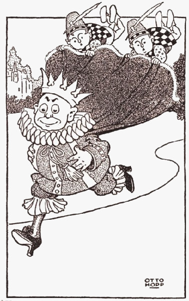 Not a single one of the courtiers had the least idea that there was any such thing as a policeman on the island, but they were a well-trained company, and knowing that the first duty of a courtier is to do as the King does, they all set off running, too, shouting, "Police! Police! Police!"