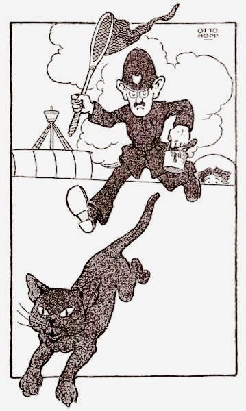 But Thomas A'Becket was not the sort of cat to be caught quite so easily as that. He just popped between the policeman's legs and came racing up the pier, when those wooden-headed courtiers, instead of heading him off, got out of his way and allowed him to pass.