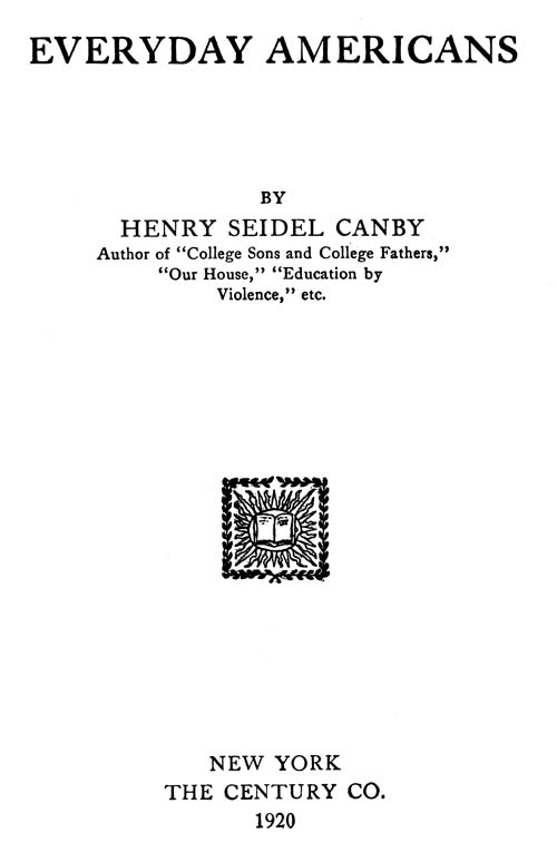 This is emphatically not a war book; and yet the chapters that follow, in one sense, are the fruits of the war, inasmuch as they represent reflections upon his own people by one returning to a familiar environment after active contact with English, Scottish, Irish, and French in the turbulent, intimate days of 1918. They are complementary, in a way, to a volume of essays which sprang from that experience and was published in 1919 under the title “Education by Violence.” But though representing in its inception the fresher view of familiar America of one returning from abroad, this book in its completed form is tendered as a modest attempt to depict an American type that was sharpened perhaps, but certainly not created by the war. The “old Americans” came to racial consciousness many years ago,[vi] although their sense of nationality has been immeasurably strengthened by the events of the last few years. It is no picture of all America, no survey of our complete social being that I attempt in the following pages; but rather a highly personal study of the typical, the everyday American mind, as it is manifested in the American of the old stock. It is a study of what that typical American product, the college and high school graduate, has become in the generation which must carry on after the war.
