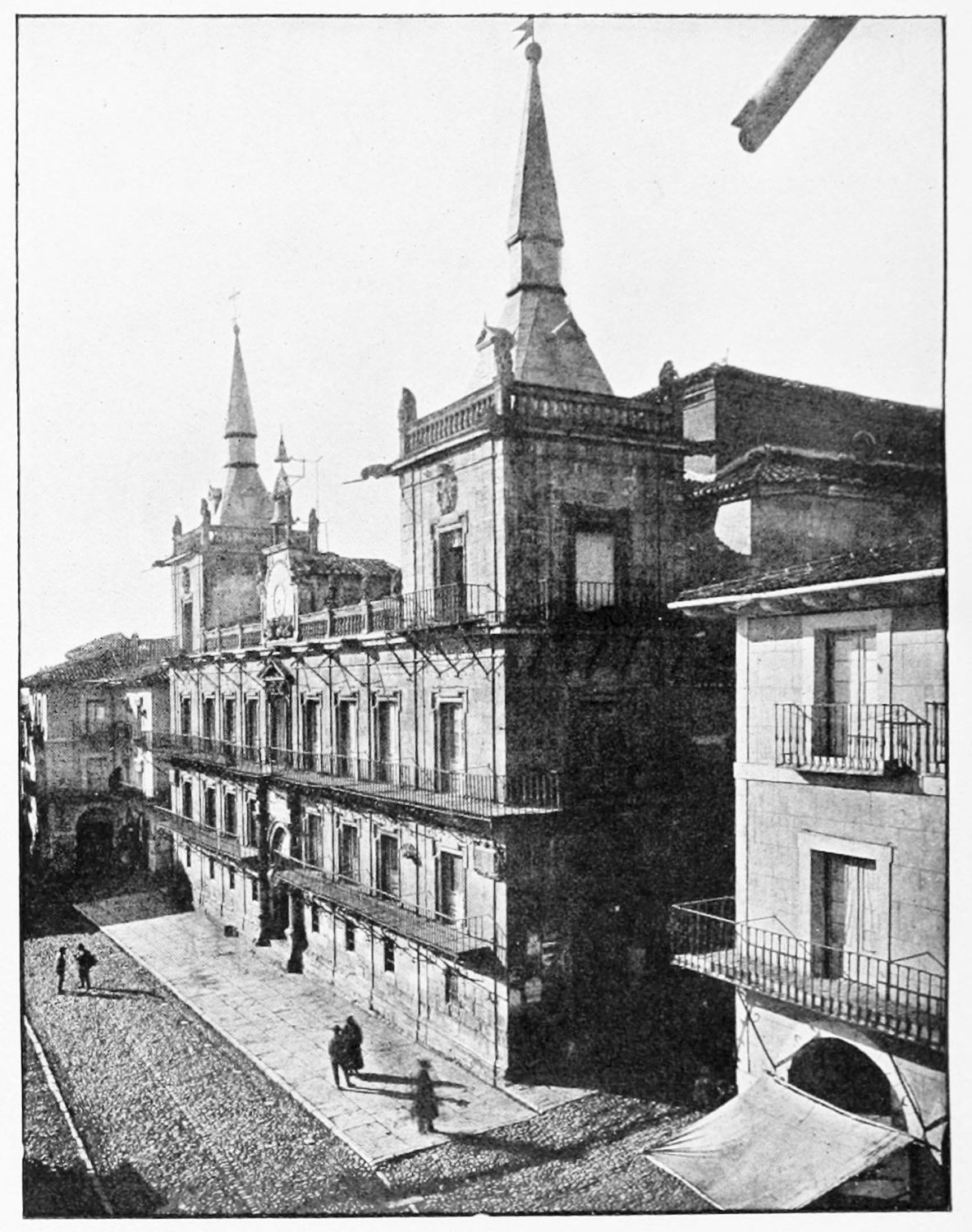 Looking on the Plaza de San Marcelo is one of Leon’s two town halls, finished by Juan de Rivera in 1584. The lower story is of the Doric order, the upper Ionic. In the council-chamber, hung with damask and velvet, may be read the verses proclaiming the excellences of the city:—
