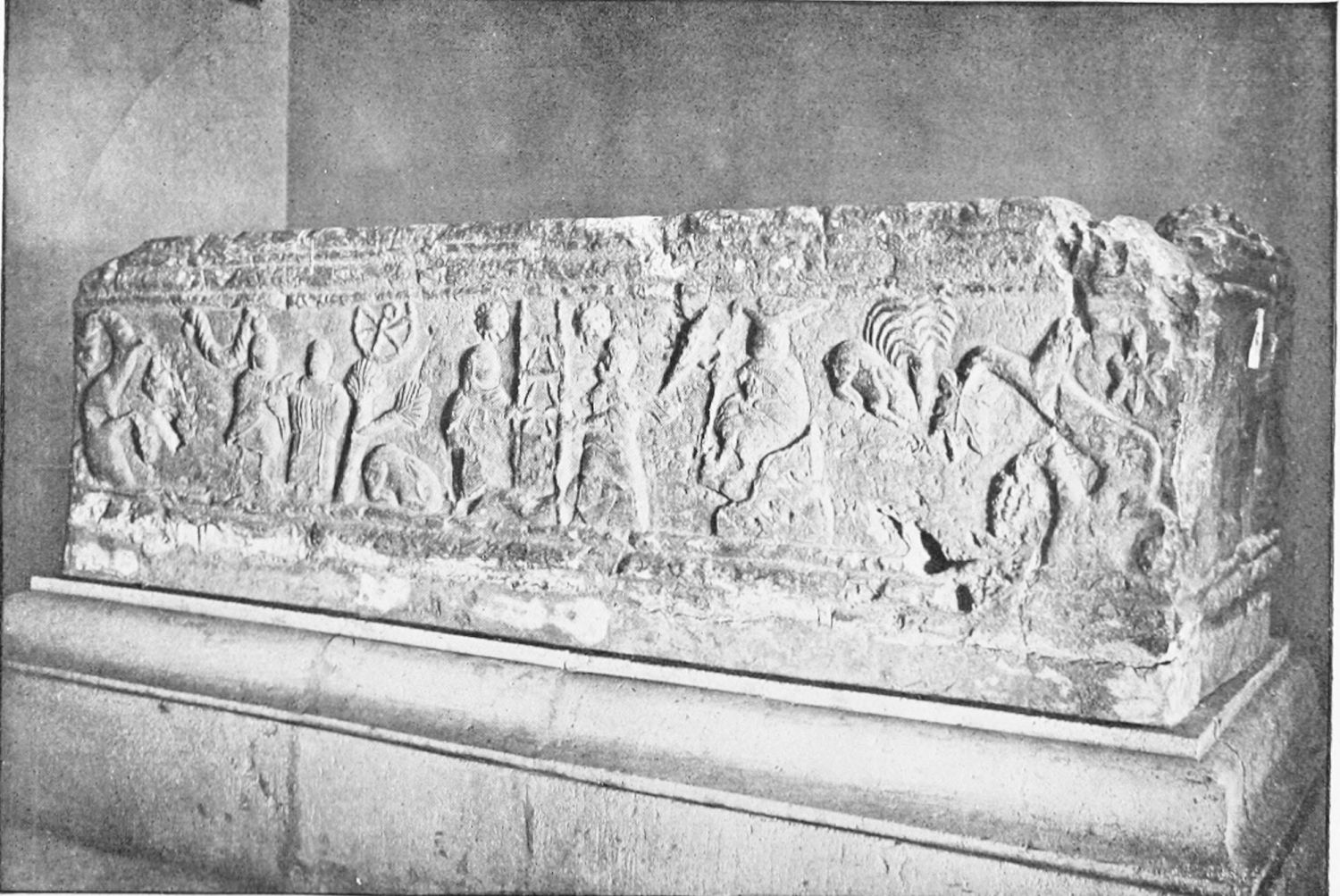 This Tullius Maximus seems to have loved the chase, and elsewhere we find him dedicating a bear’s skin to his favourite goddess. The people of the Urbs Legionis were probably mighty hunters. On a sepulchral monument the son-{9}in-law, daughter, and grandson of the founder are represented as a boar, a hind, and a fawn. The Provincial Museum also contains an altar consecrated to the genius of the legion.
