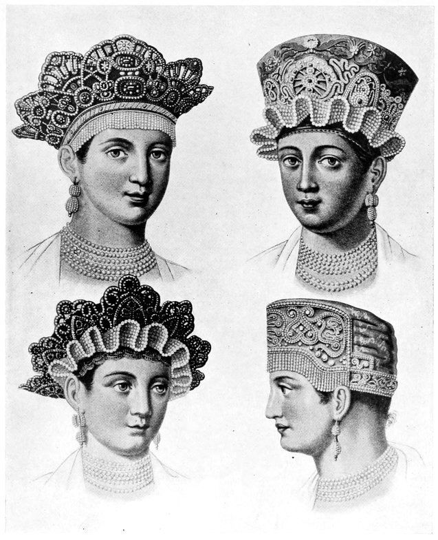 | Russian Boyard ladies of the seventeenth century, showing caps and other ornaments of pearls | 184 |