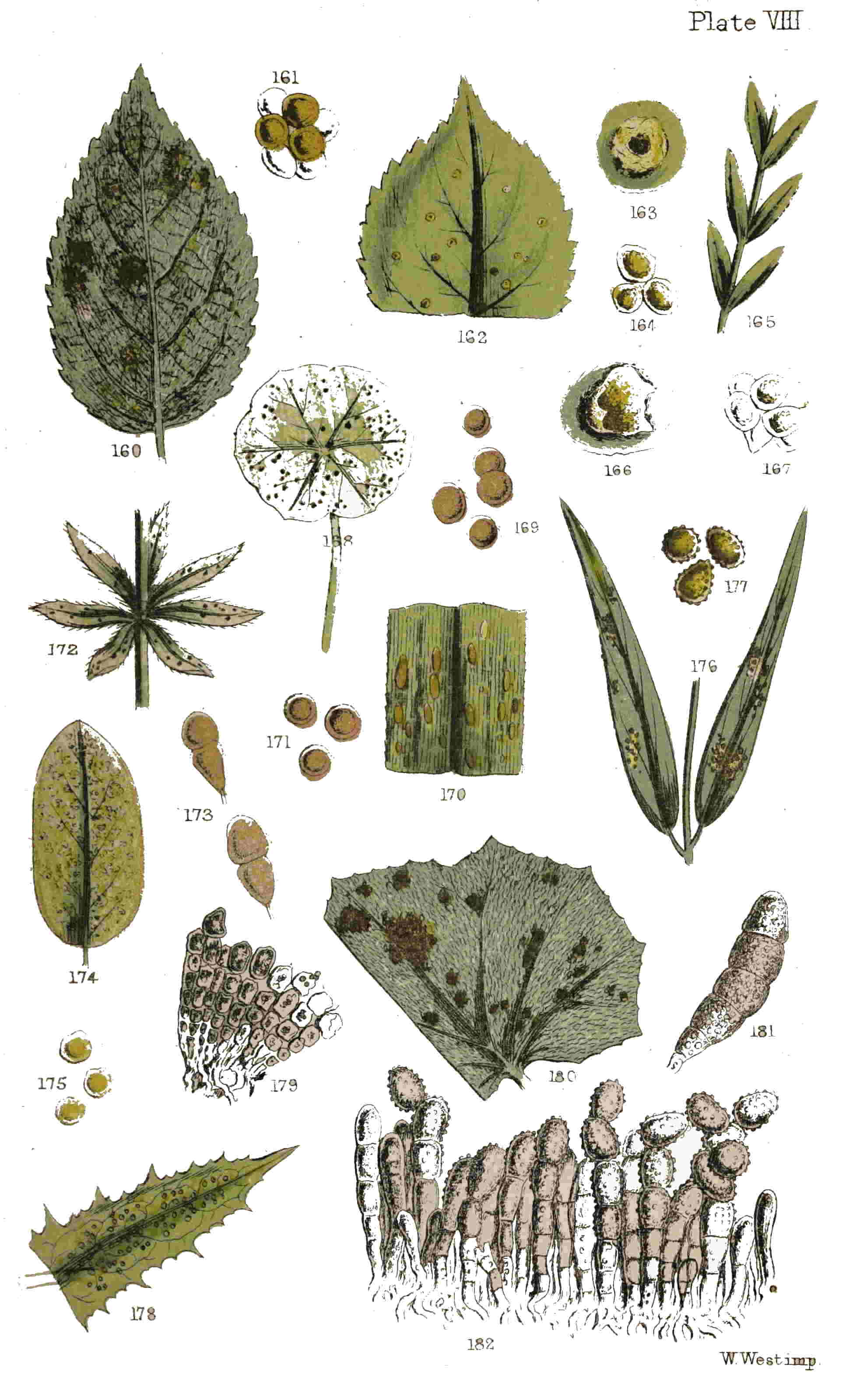 | 〃 | 182. | Group of spores of Coltsfoot rust in situ × highly (Tulasne). |
