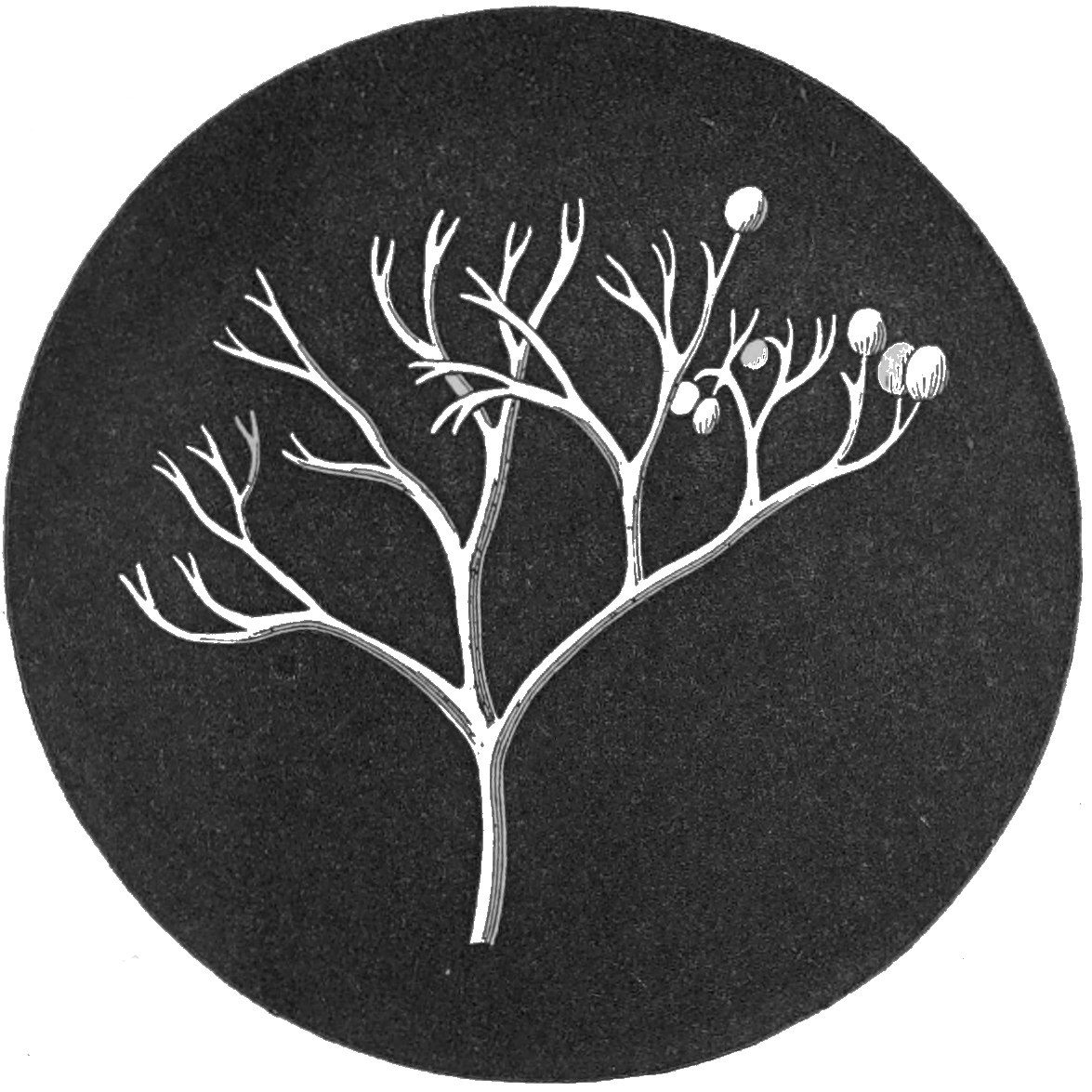 Whilst writing this, one of the most wonderful books in a book-producing age lies beside us; it is the second volume of a work on fungi, by the brothers Tulasne; and this, as well as its predecessor, 36is devoted to this very subject of a multiplicity of form in the fructification of these plants. Illustrated by the most exquisite of engravings which art has ever produced, it also unfolds many a page in the history of these organisms, for which mycologists were not altogether unprepared. In noticing this work, one of our most eminent authors on mycological subjects quotes as an example Dothidia ribis, Fr., one of our most common fungi, which occurs in the form of little black shields on dead twigs of currants and goose-berries. Here we have, he says, naked spores (conidia) growing on the external cells of the stroma; we have naked spores of a second kind (stylospores) produced in distinct cysts (pycnides); we have minute bodies of a third kind (spermatia) produced again in distinct cysts, resembling very closely similar bodies in lichens; and we have a third kind of cysts, containing the usual sporidia in sausage-shaped hyaline sacs (asci). Even here, however, we have not done with marvels; for if the stylospores are placed in water, they produce in the course of twenty-four hours conidia of a second order, exactly analogous to those which arise on the germination of the spores of the rusts and mildews which affect our cereals and other plants.