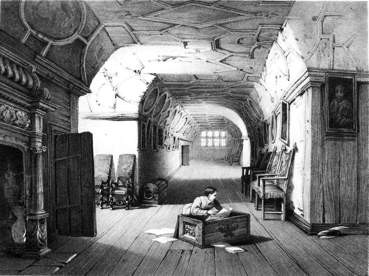 derives its principal attraction from its associations with the olden time: it is impossible to wander through its now nearly deserted apartments, without reading a solemn and impressive passage from history. Its great characteristic is solitude. The present occupant—a bachelor of venerable years—is almost the last of a distinguished and honourable race, leading a secluded life in the house consecrated by a long line of noble ancestors. Though dwelling apart from the business and turmoil of life, secluded alike from the toils and anxieties of the world, where