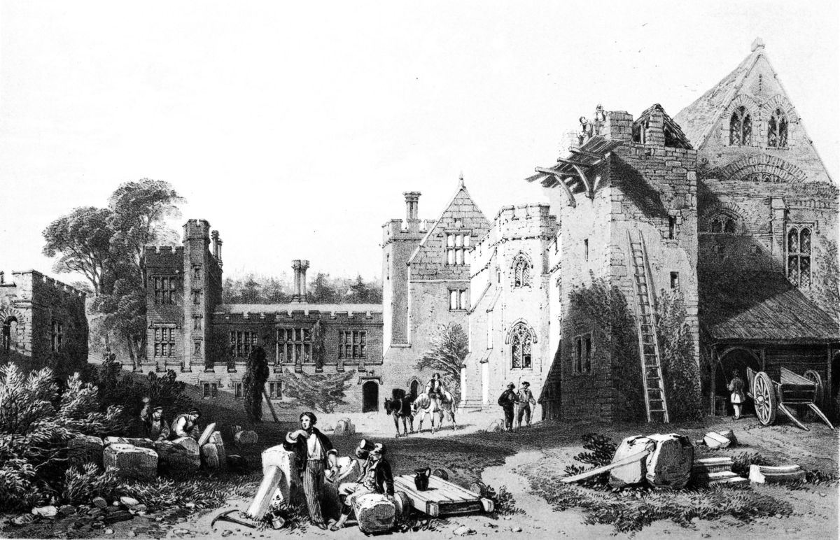 The circumstances connected with the building of Sawston Hall are akin to Romance. The popular tradition is, that it was erected at the cost of Queen Mary, who, when a fugitive from her enemies, after the death of Edward VI., found shelter in the ancient house of the Huddlestons. Her pursuers reached the Hall within a very short time after she had quitted it; and in their rage of disappointment at losing their prey, burnt to the ground the mansion that had harboured her. She is said to have witnessed the conflagration from a distant hill; and to have exclaimed, “Let the house burn; I will build Huddleston a better.”