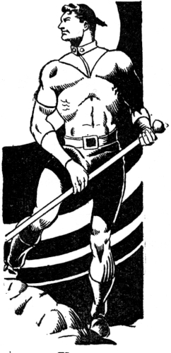 As if reading Julian's thoughts, the masked designer shook its head and made an expressive gesture with its hands, as if Julian's nudity would be a thing of such utter unimportance, that it would scarcely be noticed, except as a foundation upon which to achieve a superlative disguise. And Julian had no alternative. It was either disrobe or enter the Public Rooms as he was. Mentally he consigned the stubborn race of Ganymede to the most sulphuric region he could think of, and palming his electro-beam, undressed. The coldly unemotional designer was unable to suppress a gasp! Its ancient, long-forgotten Gods must have been like this; theirs was a cult of beauty, and in Julian it was witnessing a masterpiece. Almost, reverently, the fluttering hands began their work.