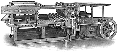 These new methods, of course, entirely superseded the “Hoe Type Revolving Machine,” which had reigned supreme in the newspaper world for over twenty years, and of which one hundred and seventy-five had been made, almost all of which have now disappeared.