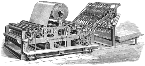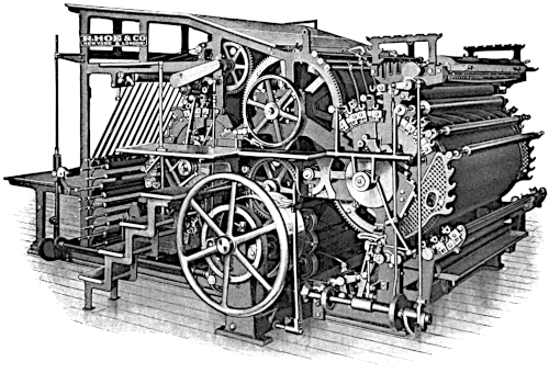 In 1871 R. Hoe & Co. also turned their attention to the construction of a rotary perfecting press to print from a roll or continuous web of paper.
