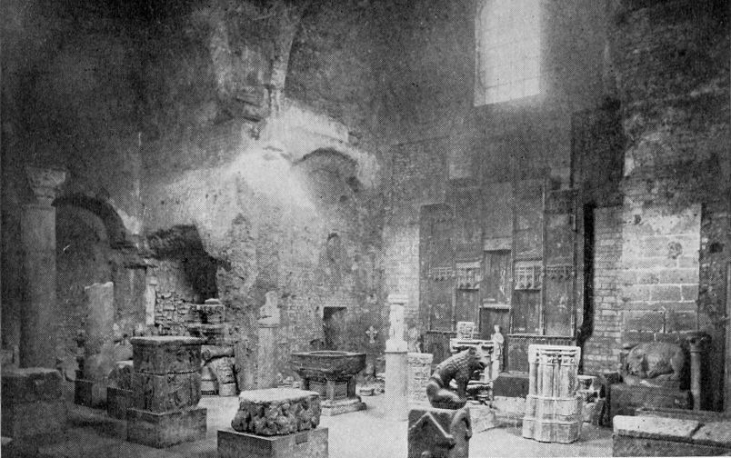 To Julian has been attributed the rebuilding of the Cité, and excavations at different points have unearthed remains unmistakably of Roman workmanship, which show that the island was completely surrounded by a wall. Probably some of the stones of the amphitheater went into it. This fortification has been related to the fourth century, and it is known that on the spot in the Cité where the Palais de Justice now houses the law courts, an administrative building of some kind has stood since this same early date. One of Julian’s successors, Maximus, erected a triumphal arch near the cathedral in 383, and it is probable that other pretentious structures justified the erection of the protecting wall.