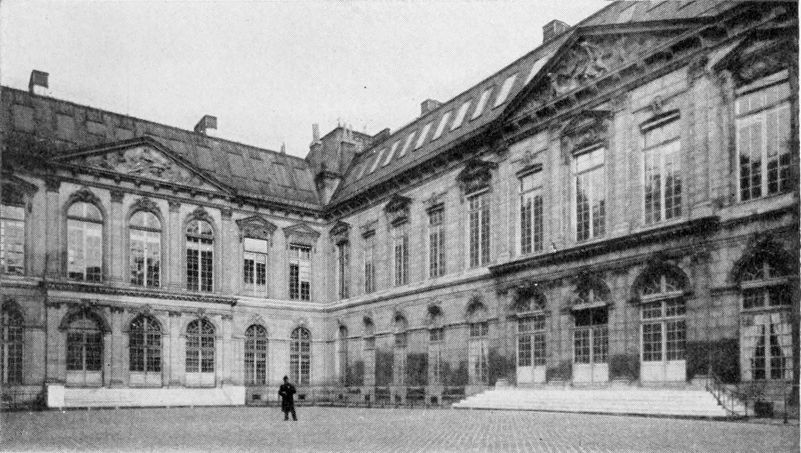 Roman civilization made its last stand in Gaul, and Paris became one of the flourishing places which the Romans knew how to encourage. As soon as the strength of the builders permitted, the town ceased to be confined to the island and spread on both sides of the river. A bridge, fortified at the mainland end, connected the island with the right bank and with the road threading its way northward to avoid the marsh whose name (Marais) is still given to a district of the city. Where now on the north shore is the square in front of the Hôtel de Ville there has always been an open place, originally kept free for the landing of merchandise from the river boats. This open place was called the Grève or Strand, and the busy scenes enacted upon it sometimes included quarrels between the masters and the longshoremen. Such a dispute came to be called a grève, the French word to-day for a strike.