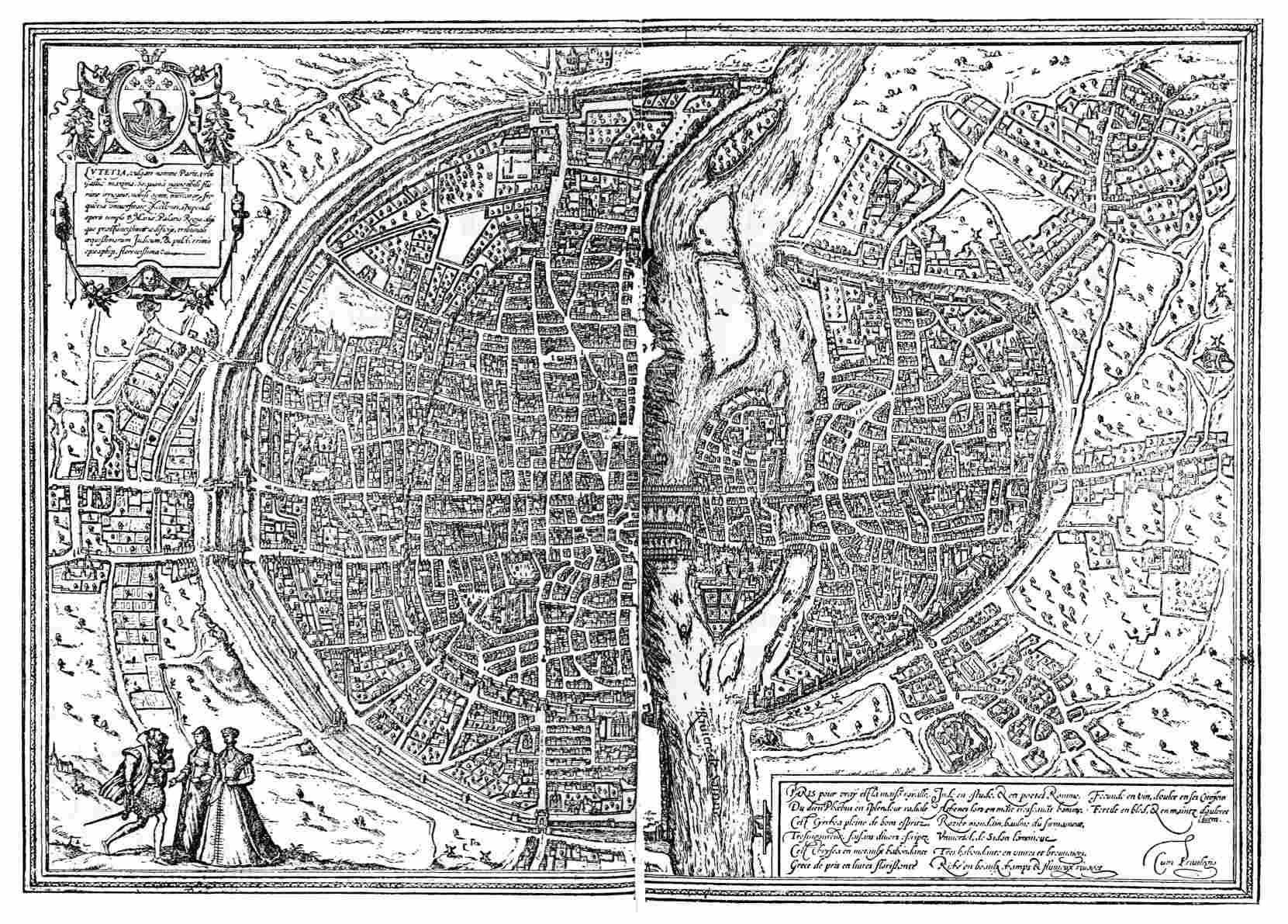 “I was in winter quarters,” he wrote, “in my{9} dear Lutetia, which is situated in the middle of a river on an island of moderate size joined to the mainland by two bridges. The winter is less severe here than elsewhere, perhaps because of the gentle sea breezes which reach Lutetia, the distance of this city from the sea being only nine hundred stadia. This part of the country has excellent vineyards, and the people cultivate fig-trees which they protect against the winter’s cold by coverings of straw.”