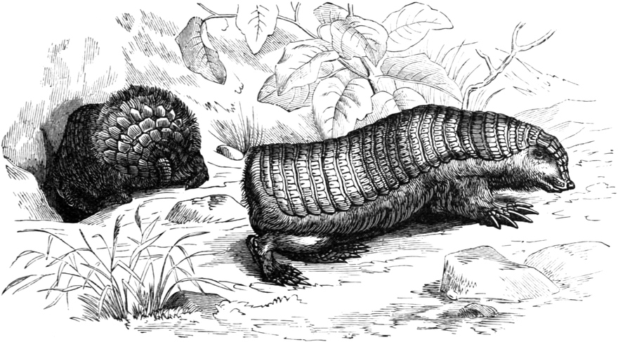 | The Armour-plates—How the Shields are formed—Their connection with the Body—Description of the Animals—Mode of Walking—Diet—Skeleton—Adaptation of their Limbs for Burrowing—Classification—THE GREAT ARMADILLO—Appearance—Great Burrower—THE TATOUAY—THE POYOU, OR YELLOW-FOOTED ARMADILLO—THE PELUDO, OR HAIRY ARMADILLO—THE PICHIY—THE PEBA, OR BLACK TATOU—THE MULE ARMADILLO—THE BALL ARMADILLO—Dr. Murie’s Account of its Habits—Description—The Muscles by which it Rolls itself up and Unrolls itself—THE PICHICIAGO—Concluding Remarks: Classification of the Order, Fossil Edentates, the Allied Species of Manis in South Africa and Hindostan | |