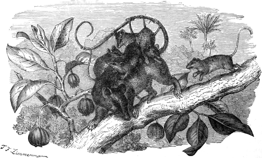 | Prehistoric Opossums—Description of the Animal—Their Teeth—Habits—THE COMMON OPOSSUM—Appearance—Use of its Tail—Food—The Young—How they are Reared—D’AZARA’S OPOSSUM—THE CRAB-EATING OPOSSUM—THE THICK-TAILED OPOSSUM—MERIAN’S OPOSSUM—Pouchless Opossums—Their Young—THE MURINA OPOSSUM—THE ELEGANT OPOSSUM—THE YAPOCK—Classification of Marsupial Animals—Geographical Distribution of the Sub-Order—Ancestry of the Marsupials—Fossil Remains | |