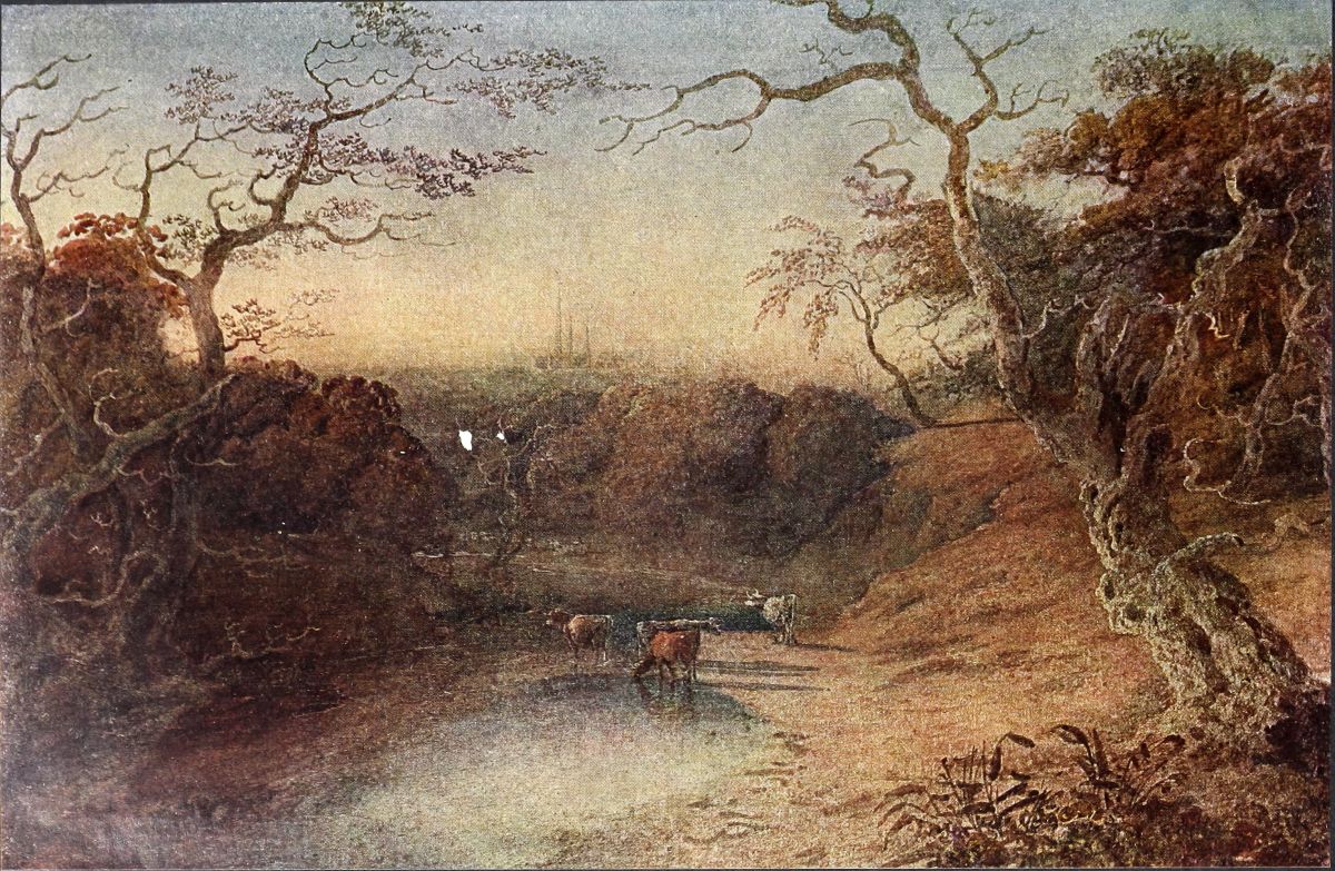 His visit to Rome would appear on the whole to have unfavourably affected his art. His oil paintings especially, from this time began to be more and more fantastic in subject, florid in colour, and complicated in design. No doubt there are brilliant exceptions, such as Childe Harold’s Pilgrimage, and others, but the old simplicity and sobriety had gone. In the water-colours also the tendency to “foxiness” and florid colour is noticeable, although not so pronounced; it is visible in the Campagna sketches just alluded to. The change was soon recognised by his admirers. In 1820 (the year following), I find in the “Annals of the Fine Arts” the following discriminating criticism of an exhibition of his works which was held that year at the town house of Mr. Fawkes of Farnley:—