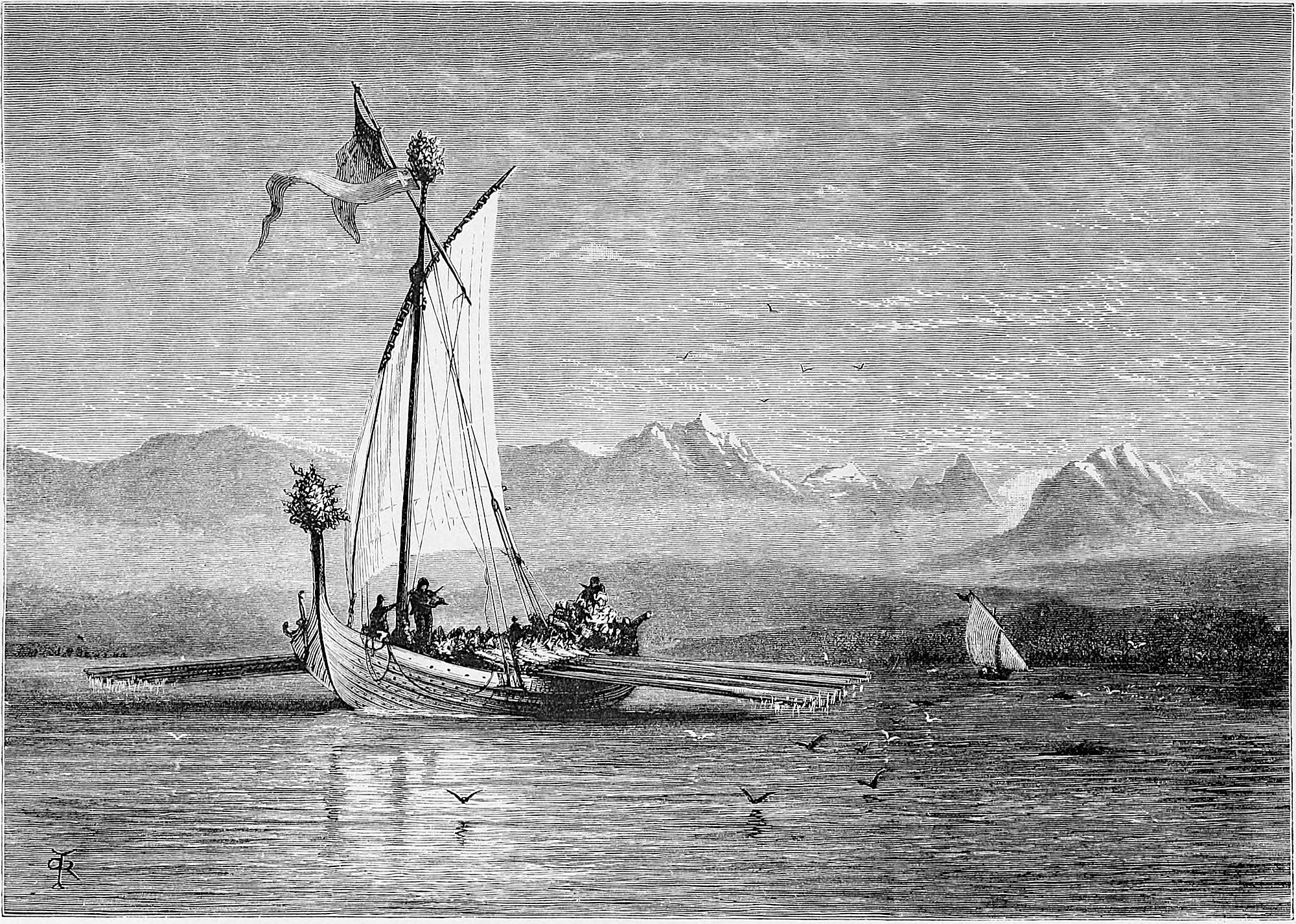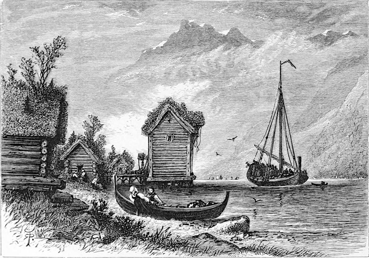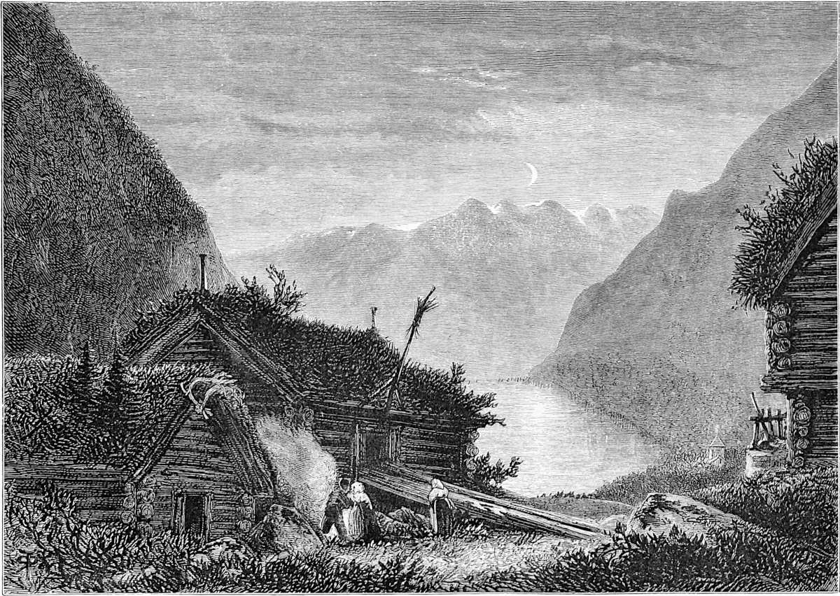 Little is said here of the cities of Christiania, Bergen, and Trondhjem, as our path lies in the open, the fjeld life, sæters, peasants, and sport. Our delight is to live out of the present century in fresh air and simplicity, where trolds might cross our path, where we might see the lovely Huldre, the beauty who had the unfortunate appendage of a cow’s tail, which, when exposed to view, was the signal for her to vanish into thin air, or where Odin and Thor had had great jagt, and killed bears, elks, gluttons, and wolves. The scenes we14 longed for were those in which pagan rites had been carried out with all the grandeur of mighty warriors and priests worthy of Valhalla; wherein Vikings, after deeds of valour, were laid low, and buried with great solemnity and becoming pomp in their own war vessels, with their treasure, their arms, and their hunting-gear about them, waiting for the call to glory.