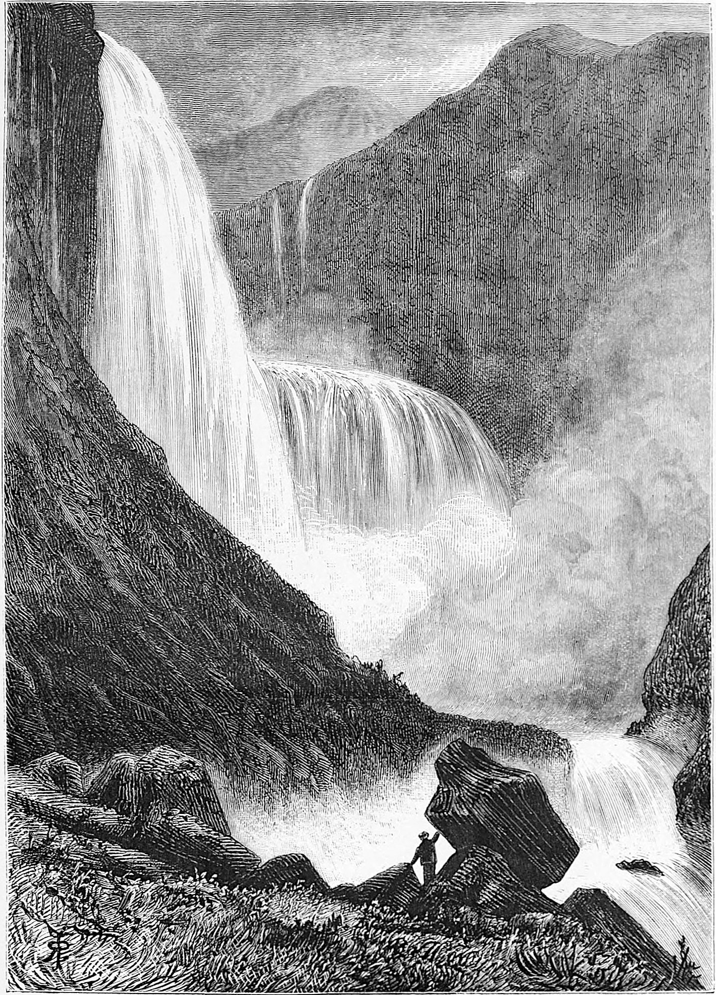 How different is it now! Thanks to Messrs. Wilson, steamers take us thither almost to the hour, unless, indeed, the clerk of the weather should connive with old Neptune to teach us a lesson, by reminding us that the elements are not yet to be ordered about entirely as we like. English visitors commenced about 1824; Lord Lothian, Lord Clanwilliam, and Lord H. Kerr, 1827; Marquis of Hastings, 1829; and in 1830 we have Elliott’s account of Norway. Those were early days, when the bönder were astonished, and could hardly believe their own eyes, when Englishmen went down with a piece of thread and a kind of coach-whip to kill a salmon of thirty pounds; or, again, when the first flying shot opened a new world to them. Those were the times when members of the Storthing (or Parliament) appeared in the costume of their own district, with belts, tolle-knives, &c. They were not so eager to grasp at civilisation as the Japanese, who simultaneously took to elastic boots, tall black hats, and the English language within a year. No; they are a contented people, with no desire for change, or to have it thrust upon them, until they discover that they can make money of the delighted foreigner, who, elevated by the grandeur of the mountain scenery, grows more warm-hearted, kind, and generous than ever. Then the Norseman becomes rabid and exacting; but the provinces (thank Heaven!) still preserve their primitive simplicity.