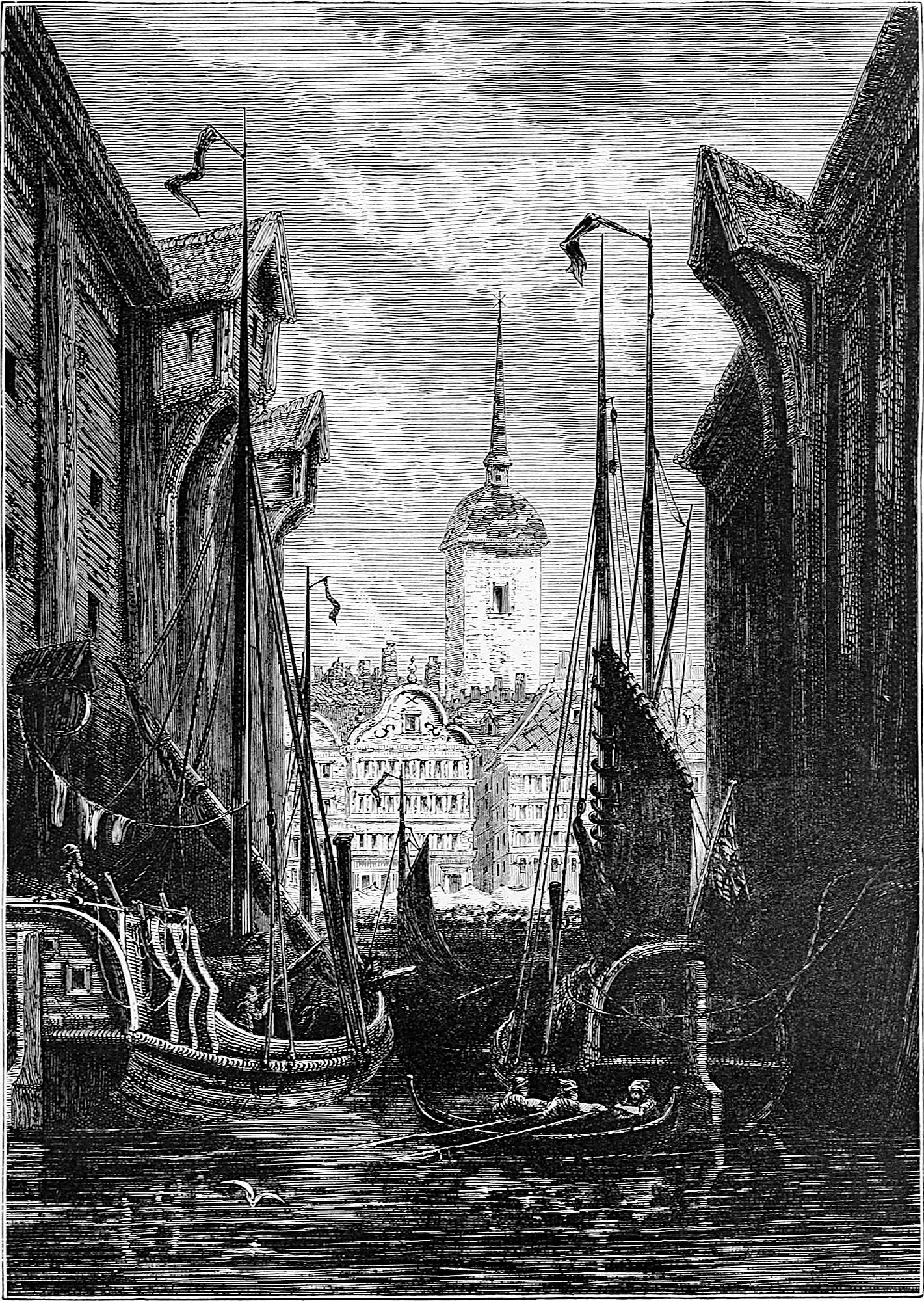 “Unless the weather is unusually stormy, and the passage of the vessel has consequently been delayed, the steamer remains in the outer harbour, called Klippen, for four or five hours; enabling the passengers who are going straight to Norway to inspect the city, which is well worth seeing. A miniature steamboat, the smallest I have ever seen, conveys you from the quay, at which the larger vessel remains moored, up the long harbour to the town itself, the journey occupying about half-an-hour. In the afternoon the Constitution continues her voyage, stretching much further out to sea, in crossing the Skager Rack, until, at an early hour the next morning, you reach Frederiksværn, the principal arsenal of Norway, situated at the entrance of the winding fjord of Christiania. From this place a smaller coasting steamboat conveys the passengers to Christiania, touching, in its passage up the Christiania fjord, at the various small towns and villages on either shore.