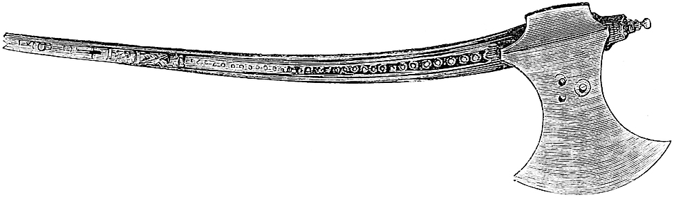 but his axe for strong work and a knife for ornamentation. The latter