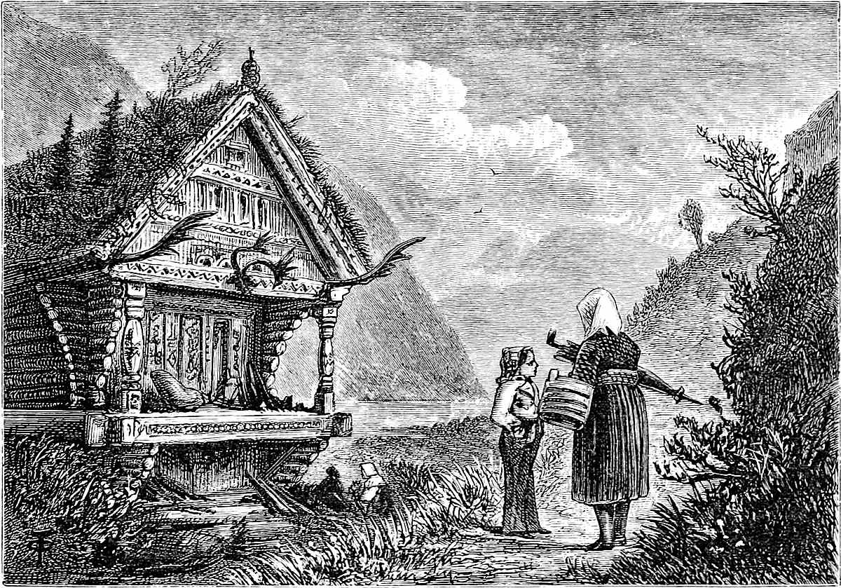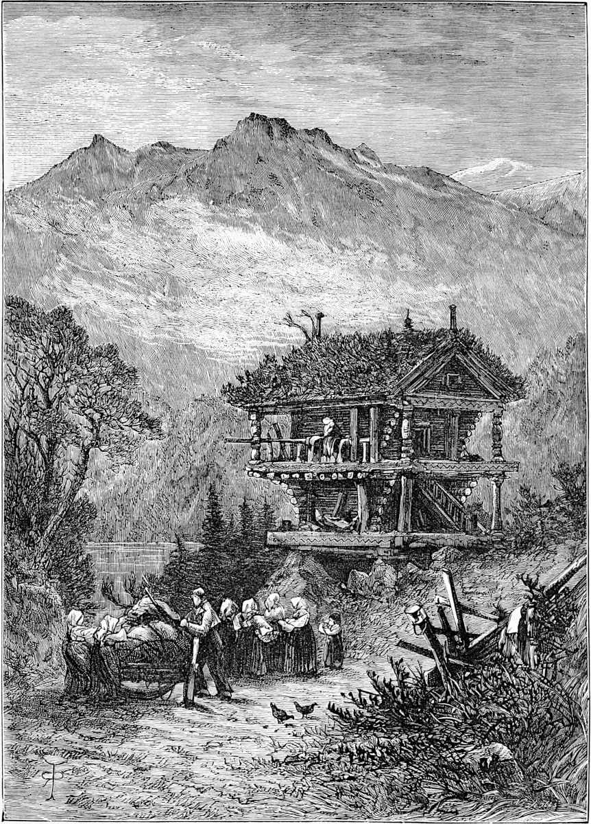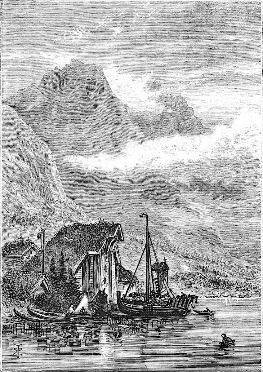 Little is said here of the cities of Christiania, Bergen, and Trondhjem, as our path lies in the open, the fjeld life, sæters, peasants, and sport. Our delight is to live out of the present century in fresh air and simplicity, where trolds might cross our path, where we might see the lovely Huldre, the beauty who had the unfortunate appendage of a cow’s tail, which, when exposed to view, was the signal for her to vanish into thin air, or where Odin and Thor had had great jagt, and killed bears, elks, gluttons, and wolves. The scenes we14 longed for were those in which pagan rites had been carried out with all the grandeur of mighty warriors and priests worthy of Valhalla; wherein Vikings, after deeds of valour, were laid low, and buried with great solemnity and becoming pomp in their own war vessels, with their treasure, their arms, and their hunting-gear about them, waiting for the call to glory.