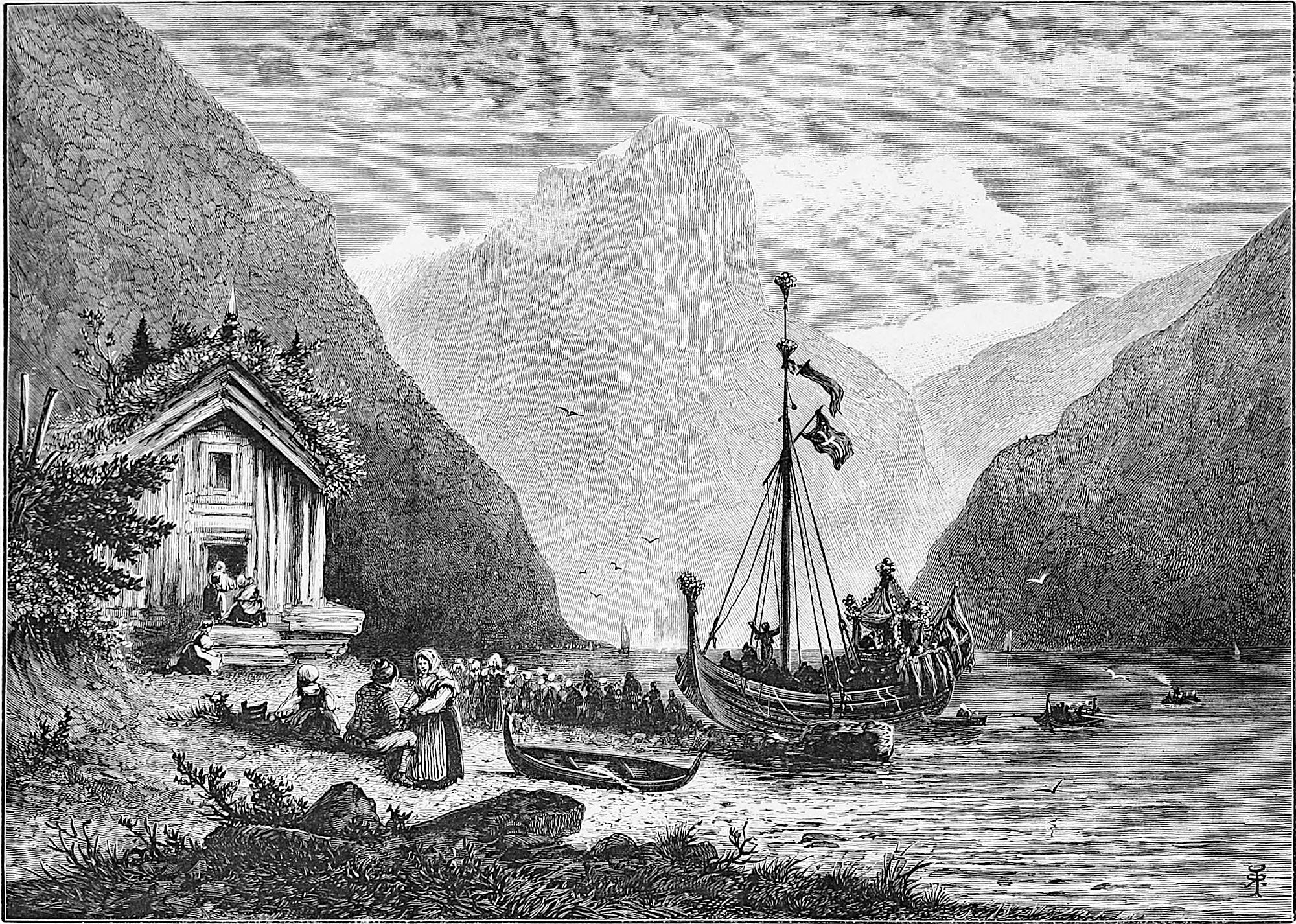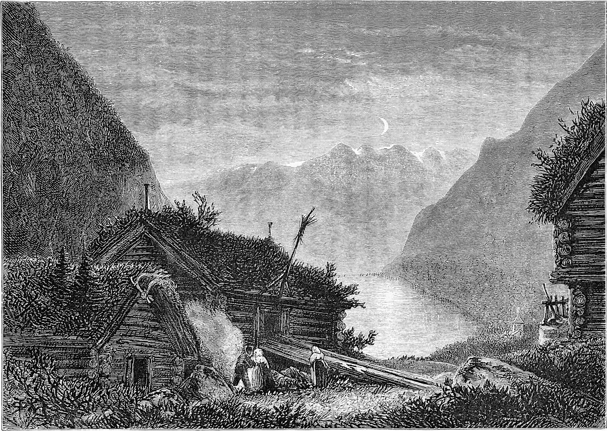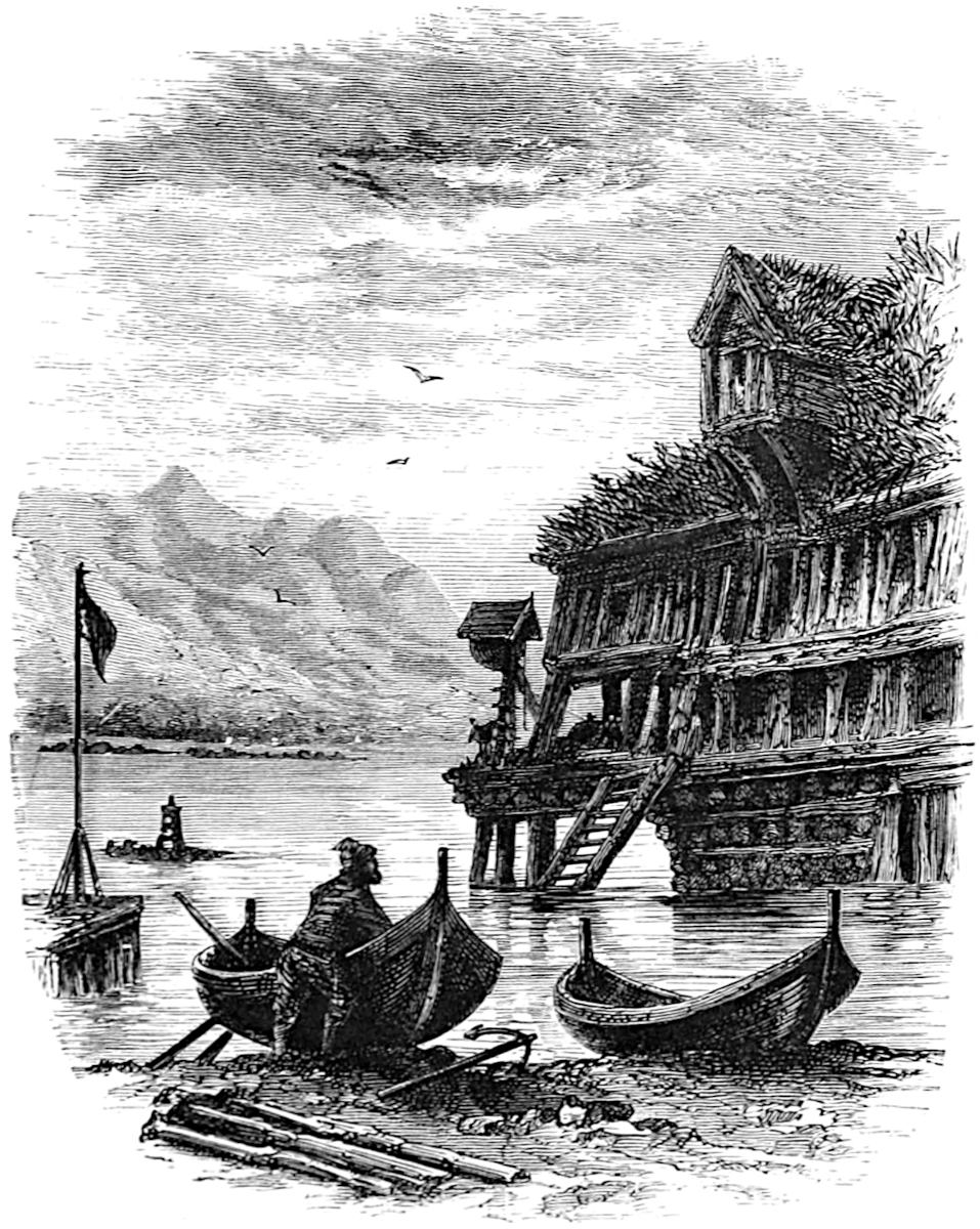 Little is said here of the cities of Christiania, Bergen, and Trondhjem, as our path lies in the open, the fjeld life, sæters, peasants, and sport. Our delight is to live out of the present century in fresh air and simplicity, where trolds might cross our path, where we might see the lovely Huldre, the beauty who had the unfortunate appendage of a cow’s tail, which, when exposed to view, was the signal for her to vanish into thin air, or where Odin and Thor had had great jagt, and killed bears, elks, gluttons, and wolves. The scenes we14 longed for were those in which pagan rites had been carried out with all the grandeur of mighty warriors and priests worthy of Valhalla; wherein Vikings, after deeds of valour, were laid low, and buried with great solemnity and becoming pomp in their own war vessels, with their treasure, their arms, and their hunting-gear about them, waiting for the call to glory.